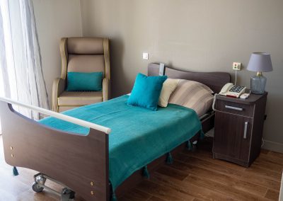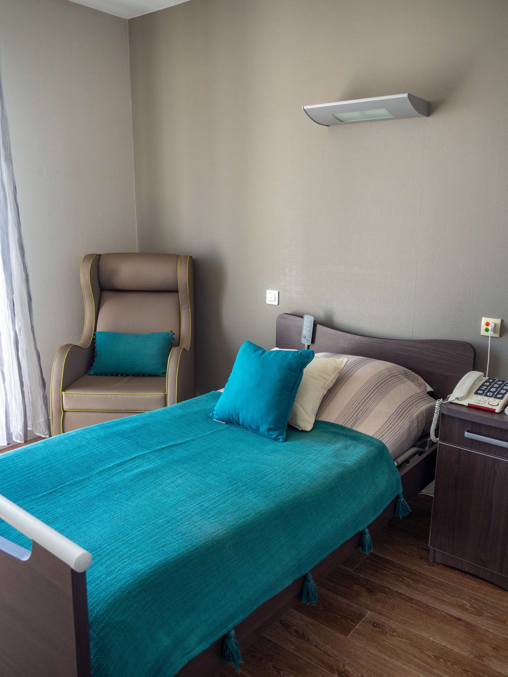 Chambres spacieuses jusqu’à 30m2, équipées d’un lit médicalisé dernier cri, de l’essentiel du mobilier, de la climatisation réversible et d’une salle de bain individuelle et sécurisée.